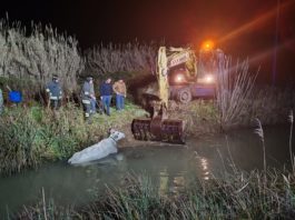 Fondi, messa in salvo una mucca caduta nel canale Baratta