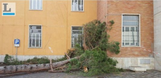 Latina, albero caduto davanti alla Vittorio Veneto. Lo striscione di Blocco studentesco