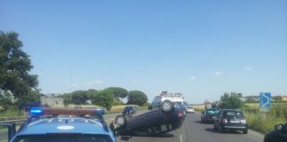Auto cappottata sulla Pontina: traffico in tilt