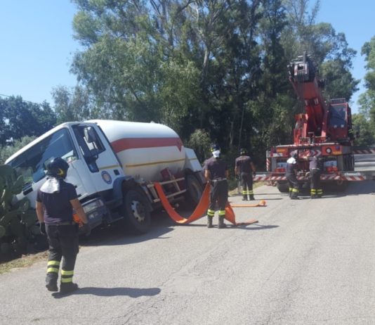 Sabaudia, autocisterna carica di gpl finita fuori strada