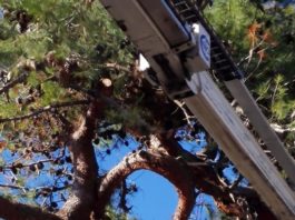 Via Epitaffio bloccata, operai del Comune al lavoro per potare gli alberi
