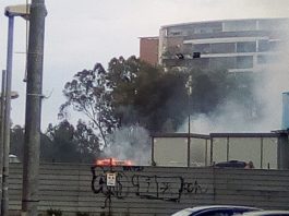 Latina, paura per un vasto incendio nel cantiere della cittadella giudiziaria. Fiamme anche attorno al Miami Beach