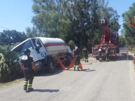 Sabaudia, autocisterna carica di gpl finita fuori strada
