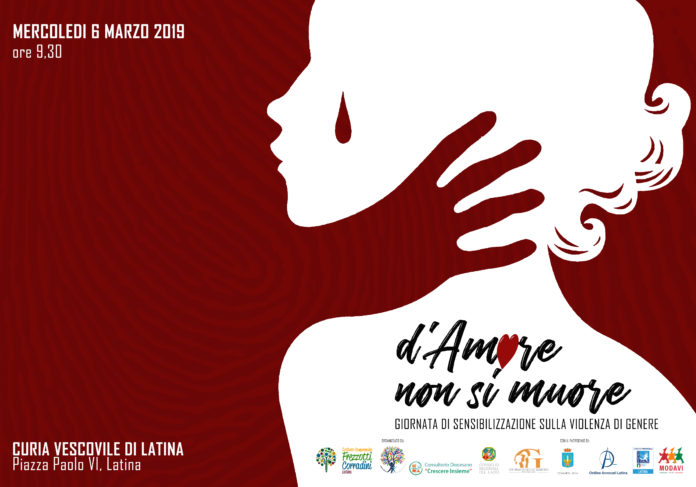 D’amore non si muore, giornata di sensibilizzazione sulla violenza di genere. Questo il titolo del convegno che avrà luogo mercoledì 6 marzo, con inizio alle 9.30, presso la sala San Marco della Curia Vescovile di Latina. Ad organizzarlo l’istituto comprensivo “Frezzotti Corradini”, il Nucleo Operativo per la Prevenzione dei Fenomeni di Bullismo e Cyber Bullismo del Cts, lo Sportello Istituzionale di Ascolto Minori e Famiglia di Latina Autorità Garante Infanzia e Adolescenza della Regione Lazio, il Consultorio Familiare Diocesano “Crescere Insieme” della Diocesi di Latina, Terracina, Sezze e Priverno e l’Associazione Forma Mentis.
