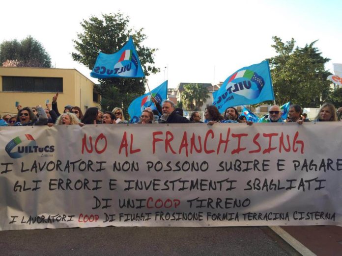 “Apprendiamo – dichiarano dall Uiltucs Latina – che nel punto vendita di Cisterna è stato strappato ed oscurato ogni logo Coop. Da mesi come categoria contestiamo l’affidamento in franchising alla soc Leale srl oggetto di tante cronache anche a mezzo stampa, come categoria Uiltucs Latina abbiamo sempre dichiarato che il modello franchising avrebbe determinato molte criticità sui livelli occupazionali e salariali, infatti cosi è avvenuto, prima di “strappare” un marchio doveva verificare chi avrebbe gestito il punto vendita, dove era Coop al momento dell’affidamento, intanto in quel punto vendita di Cisterna come tanti del basso Lazio, molti lavoratori sono rimasti senza lavoro, le colpe e responsabilità sono di Coop ed Unicoop Tirreno nel Basso Lazio.