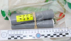 La perquisizione domiciliare eseguita nel corso delle investigazioni e disposta dalla locale A.G., ha consentito a casa di entrambi di trovoare armi da punta e taglio, materiale propagandistico delle ideologie neonaziste e razziste, nonché un ordigno artigianale con potenzialità micidiali.