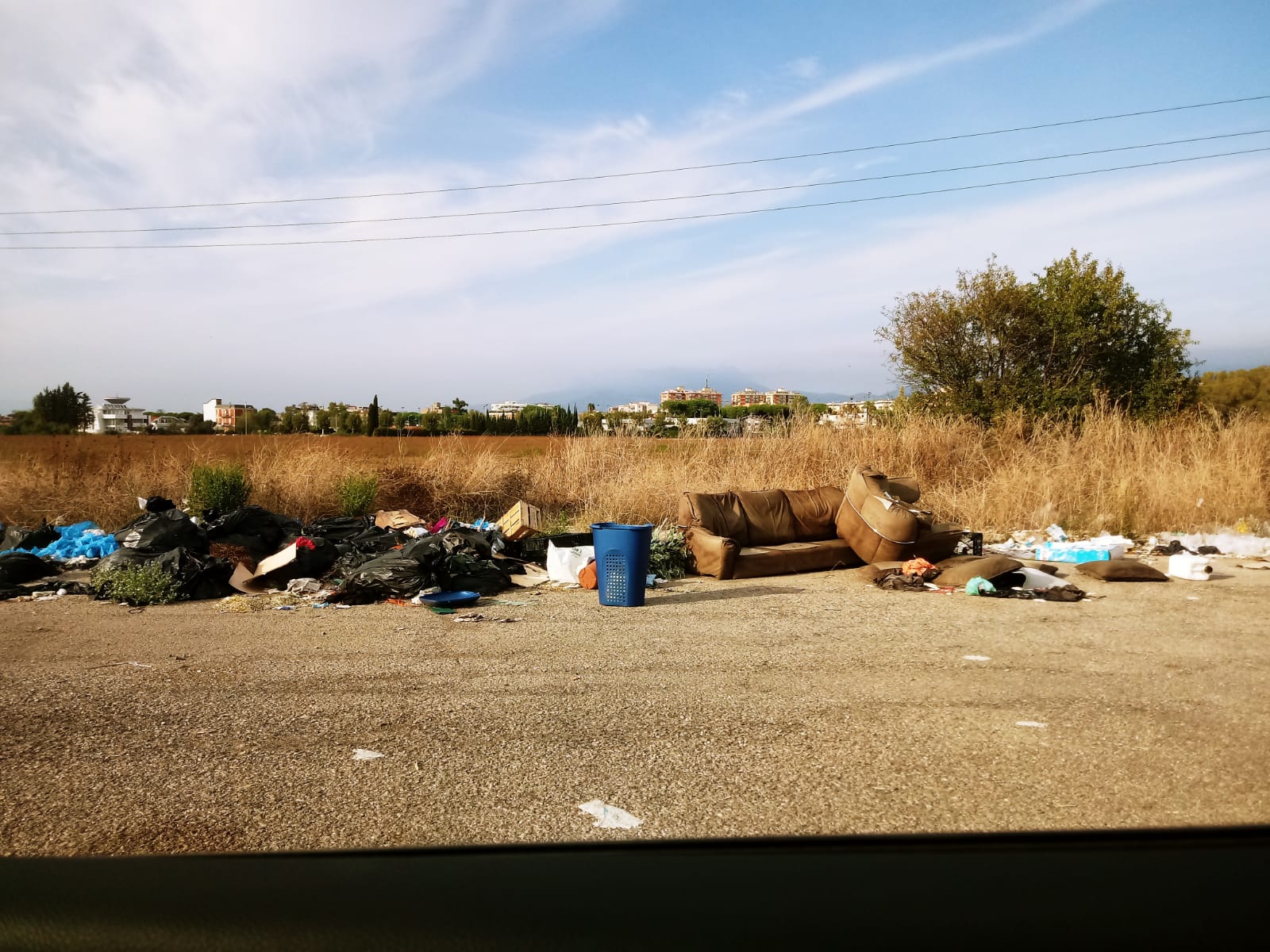 Discarica a cielo aperto in via Regione Veneto, a Latina. Rifiuti ammassati da cittadini ineducati fanno bella mostra di sé rendendo la zona degradata e maleodorante.