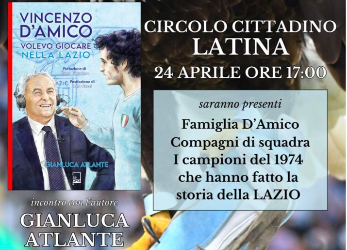 A chiudere la rassegna domani, a partire dalle 17 al Circolo cittadino, è il giornalista Gianluca Atlante che presenterà il suo libro “Vincenzo D’Amico. Volevo giocare nella Lazio”, dedicato a O’Rey di Piazza Roma, l’unico grande numero dieci della storia del nostro calcio a non aver messo d’accordo il proprio talento con l’azzurro della Nazionale.