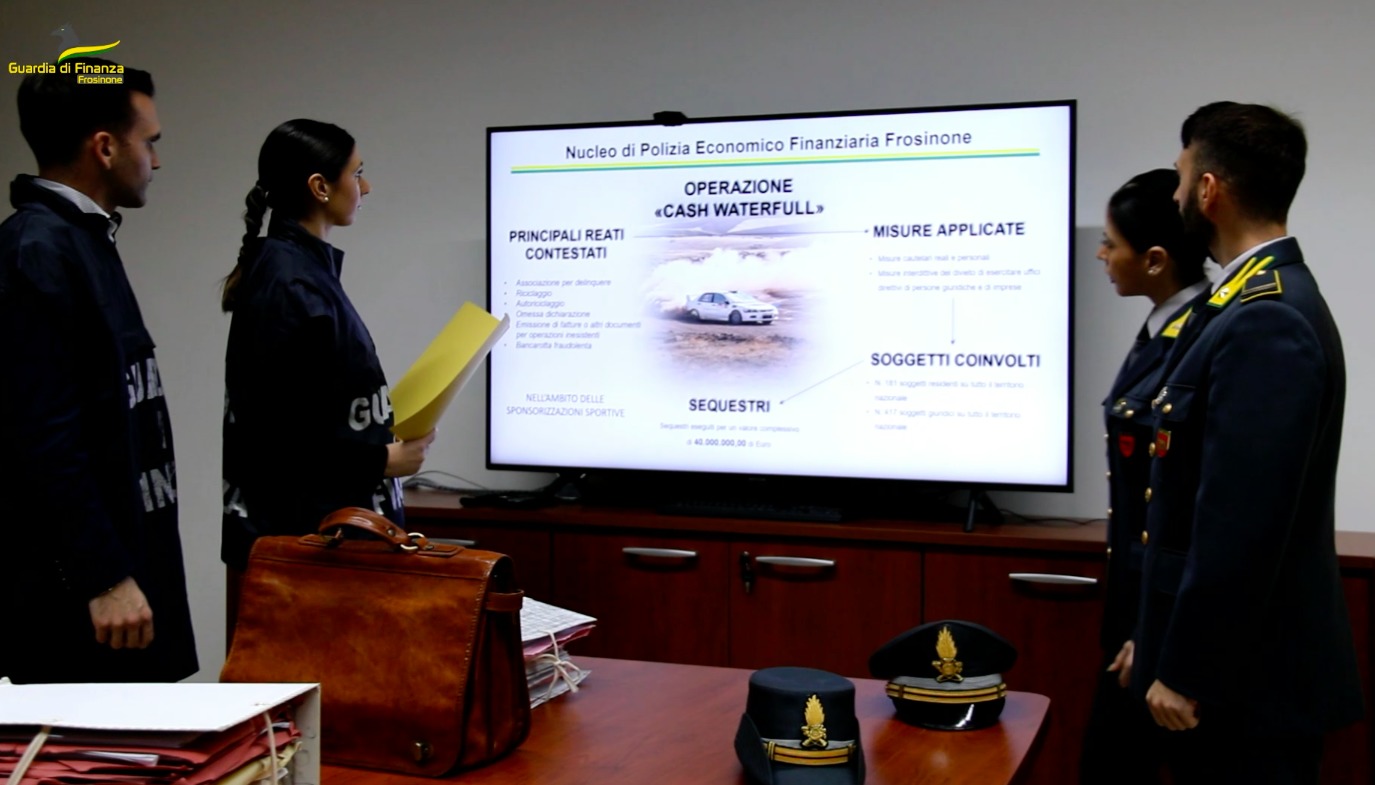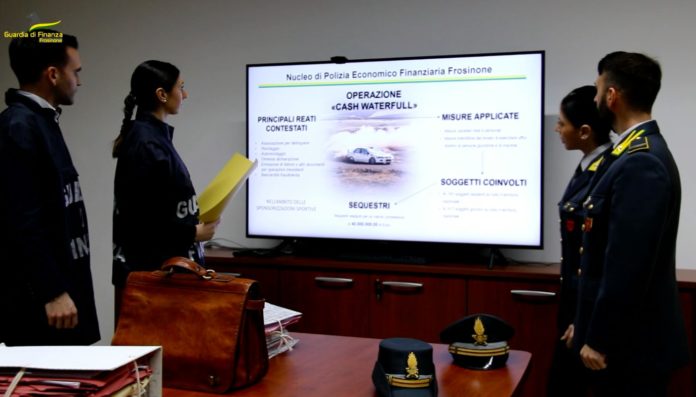 Quaranta milioni di euro tra beni e disponibilità finanziarie sequestrati, oltre a 6 misure cautelari(una in provincia di Latina, una a Sondrio e 4 a Frosinone) agli arresti domiciliari e numerose perquisizioni. E’ questo il bilancio dell’operazione denominata “Cash Waterfull” portata a termine questa mattina dagli uomini del Comando Provinciale di Frosinone per sgominare un’associazione a delinquere finalizzata alla commissione di reati tributari, riciclaggio, autoriciclaggio, intestazione fittizia di beni e bancarotta fraudolenta.