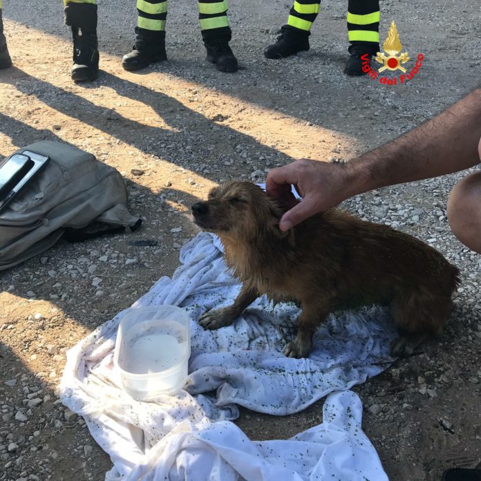Cagnolino salvato dai vigili del fuoco, questa mattina, a Terracina. Il piccolo meticcio era finito in una vascone pieno d’acqua, presso un’azienda in disuso di via Pontina, ed è stato prontamente recuperato.