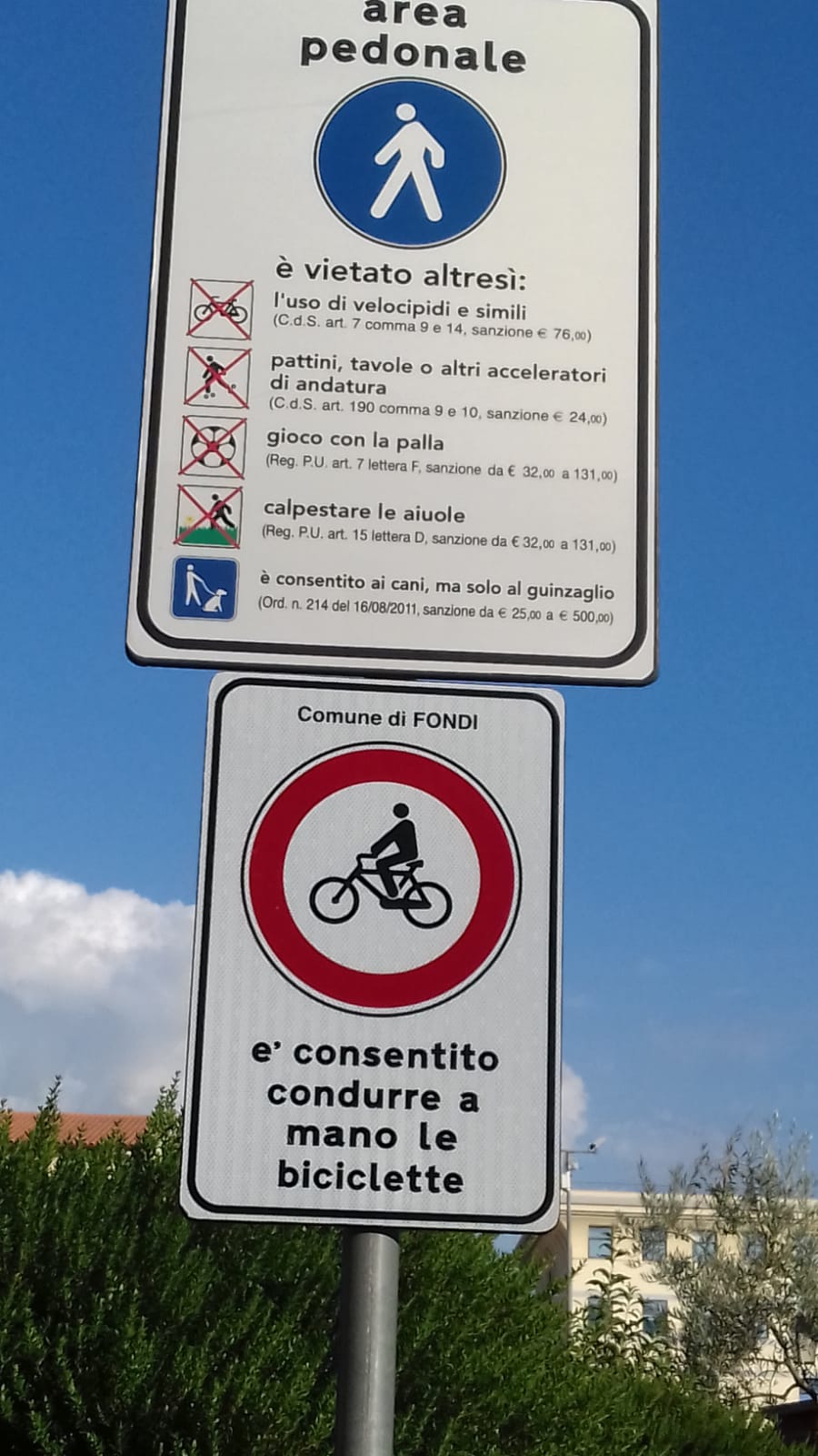 Il tutto in contrasto con la segnaletica che l’amministrazione comunale ha fatto collocare nella centralissima piazza De Gasperi con indicazioni precise: divieto di “uso di velocipedi; pattini e tavole o altri acceleratori di andatura; gioco con la palla; calpestare le aiuole” e passeggio con i cani ma “solo al guinzaglio.”