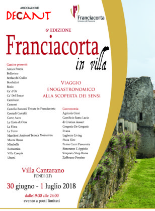 Per info: associazionedecant.it, decantfondi@gmail.com, tel: 328/8449450, 335/6270026, 339/206076. Pagina Facebook: www.facebook.com/franciacortainvilla.