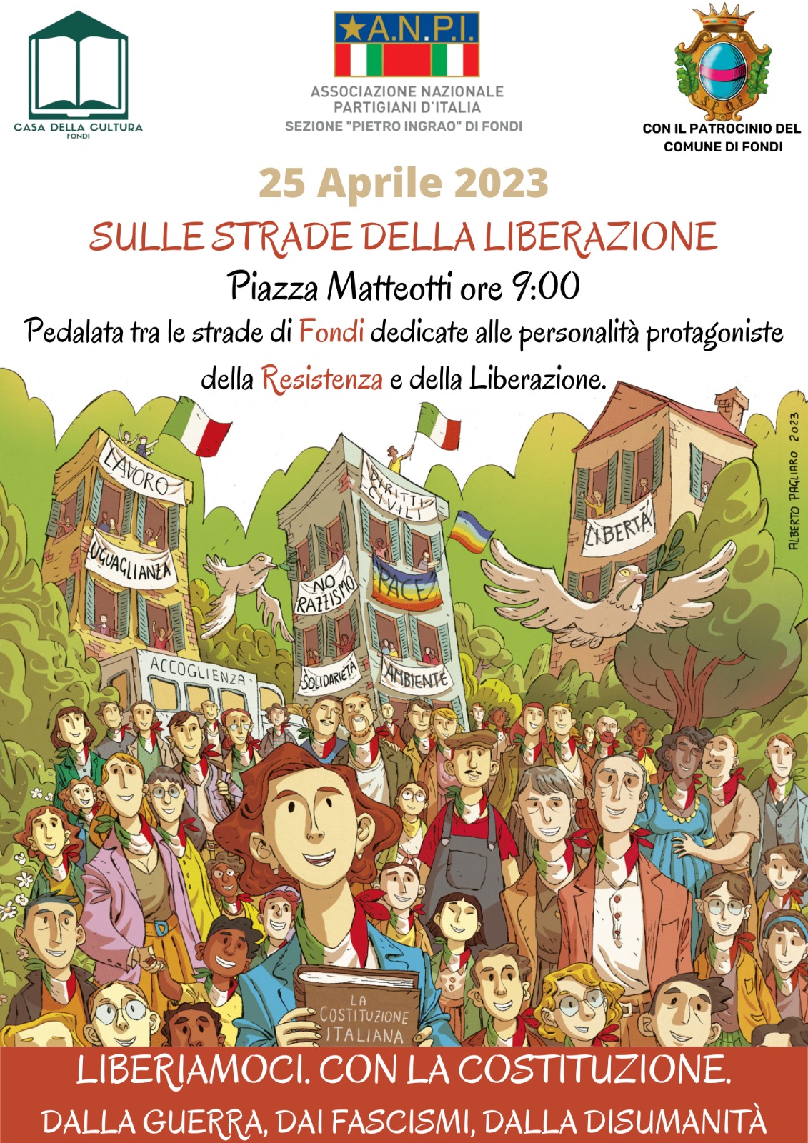 Dopo il successo delle scorse edizioni di “Sulle strade della liberazione”, il 25 aprile tornerà a Fondi il tour con partenza alle ore 9 in Piazza Giacomo Matteotti, organizzata dalla sezione Pietro Ingrao di Fondi dell’Anpi, con il patrocinio del comune di Fondi e della Casa della Cultura, permettendo ai partecipanti di esplorare la città con le loro biciclette.