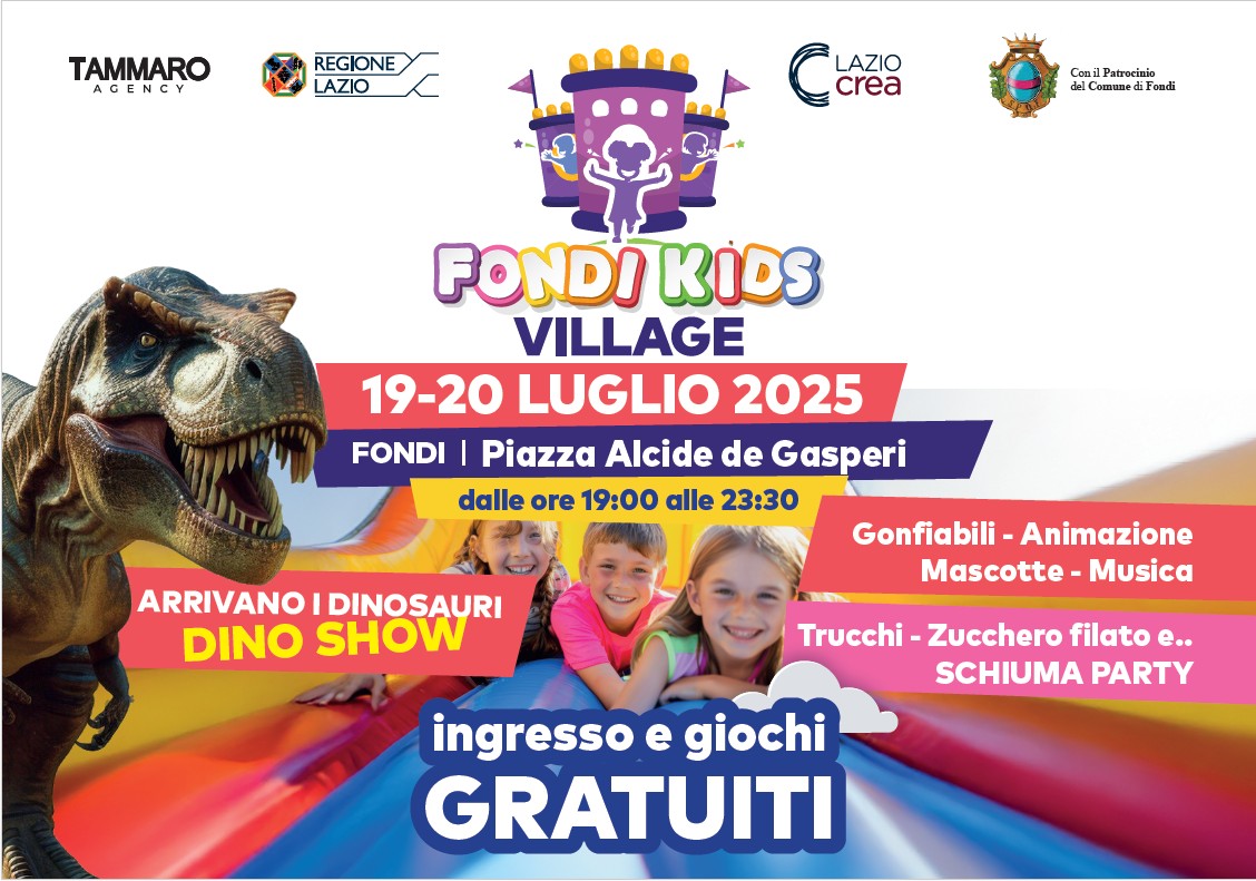 Due serate all’insegna della fantasia, della musica e del divertimento per i più piccoli: sabato 19 e domenica 20 luglio, piazza De Gasperi a Fondi si trasformerà nel Fondi Kids Village, un vero e proprio villaggio delle meraviglie pensato per bambini e famiglie.
