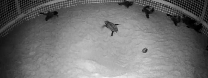 Per tutta la notte sono state vegliate da curiosi, che hanno aspettato fino alle sei del mattino per vedere le neonate tartarughe uscire dalla sabbia, da un tratto altamente protetto, per poi correre verso il mare e verso la libertà.