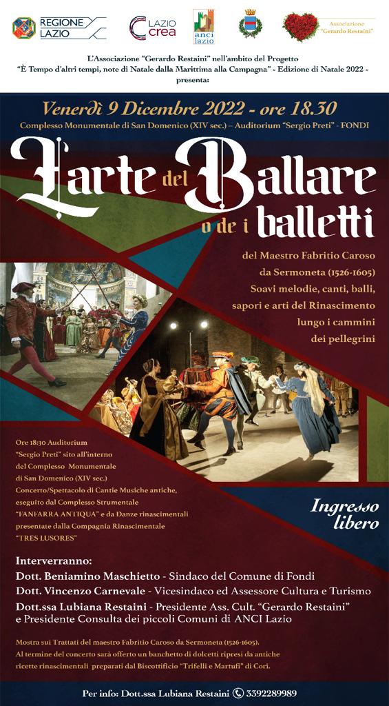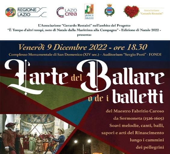 L’associazione “Gerardo Restaini”, nell’ambito del progetto “È tempo d’altri tempi, note di Natale dalla Marittima alla Campagna” presenta “L’arte del Ballare o de i balletti” del Maestro Fabritio Caroso da Sermoneta (1526-1605).