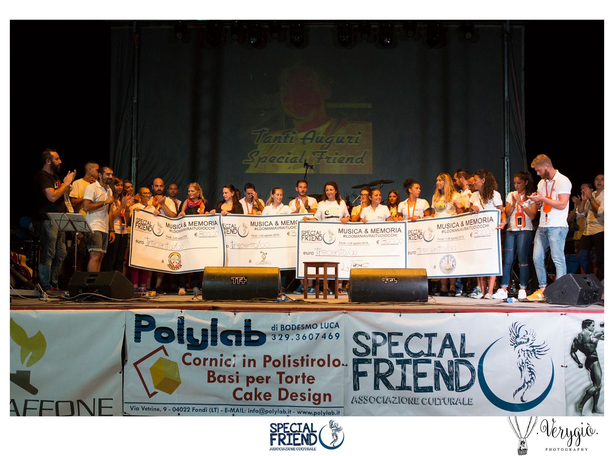 L’evento MUSICA & MEMORIA, arrivato alla terza edizione, è ideato, realizzato e promosso dall’associazione ‘Special Friend’. L’associazione nasce da un gruppo di ragazzi per ricordare un amico speciale, Giacomo Recchia, e ha come fine quello di creare iniziative continue nel tempo per la raccolta fondi da destinare ad attività di assistenza sociale per persone disabili o, più in generale, per le persone bisognose. Musica & Memoria rende omaggio a Giacomo, una persona che rideva alla vita. Così il 25 agosto, giorno del suo compleanno, nel nome del grande sorriso con cui ha vissuto e che ha regalato ogni giorno a tutte le persone a lui vicine, l’Associazione Special Friend vuole ricordarlo, provando a donare lo stesso sorriso a persone meno fortunate, attraverso un aiuto mirato, sia economico che morale. Anche quest’anno l’evento si svolgerà nel suggestivo Anfiteatro De Gasperi di Fondi. Per l’occasione la piazza diventerà un tripudio di colori e vitalità, grazie al Truccabimbi, e alla presenza dell’associazione ARS ET VIS, che curerà una mostra artistica di giovani locali con la realizzazione di una tela estemporanea. Alle ore 21.00 aprirà lo spettacolo lo scrittore/narratore Angelo Coscia, con il suo intervento “La ricerca della bellezza dalla fiaba narrata alla fiaba vissuta”. Seguirà il concerto del gruppo “Cantiere ArtiArmoniche – fraternità Monastero San Magno” e, come ogni anno, la serata sarà conclusa con lo spettacolare lancio delle lanterne. Saranno presenti anche le associazioni UNITALSI e VITA (volontari insieme per la salute degli animali). La conduzione sarà affidata a Francesco Ciccone. Durante la serata verranno proiettate le immagine del contest#MERITIDELMONDOOGNISUABELLEZZA. Come sempre, i fondi raccolti saranno dati in beneficenza alle associazioni partecipanti all’evento, tra cui progetto “L’ORTO DI MARY GRACE”, che prevede, attraverso l’ampliamento di un orto sinergico e alla completa realizzazione di una Fattoria Didattica, l’inserimento lavorativo di soggetti fragili. Il fine è quello di creare una opportunità di reale inclusione per e con tutti coloro i quali, per vari motivi, difficilmente vengono riconosciuti dalla comunità come persone funzionali e produttive. L’evento è patrocinato dal Comune di Fondi.