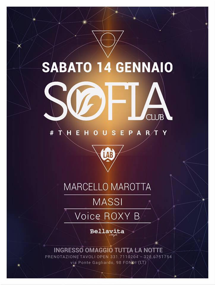 L’evento del primo sabato di gennaio è stato, per il Sofia Club di Fondi, un vero e proprio spettacolo di pubblico e di emozioni. Un sold out filologicamente coerente con il capodanno. Sabato 14, stasera, cambio di ritmo, di vibrazioni e di artisti. Questa è la filosofia del Sofia 2017: vicino ai gusti di tutti. Ecco che in collaborazione con House Lab, presenta la one night thehouseparty. In consolle i dj Marcello Marotta (foto sopra) e Massi, mentre la voce è quella di Roxy B. Insomma un contenuto molto ricco di cose, che sono il preludio alla festa del 28 quando arriverà in consolle Joe T. Vannelli. Sofia Club via Ponte Gagliardo, 90 Fondi. Info: 3317110204. Ingresso omaggio tutta la notte.