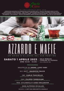 Di fronte a questa problematica, la Caritas di Gaeta, da tempo impegnata a contrastare la diffusione delle ludopatie, organizza il convegno “Azzardo e mafie: un grido di allarme nel Sud Pontino” sabato 1° aprile, alle 10.30, presso la Sala Ribaud del Comune di Formia, in via Vitruvio 190. Intervengono: Mons. Luigi Vari, arcivescovo di Gaeta, Ecc.za. Maurizio Falco, Prefetto di Latina. Cav. Filippo Torrigiani, consulente commissione parlamentare antimafia, Ten. Colonnello Luigi Galluccio, comandante del Gruppo della Guardia di Finanza di Formia.