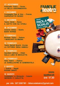 Torna da domani 27 novembre la XIII edizione di “Famiglie a teatro”, la rassegna di teatro per ragazzi e ragazze promossa dal Teatro Bertolt Brecht presso il Piccolo Teatro Iqbal Masih in via Vitruvio 342 a Formia.