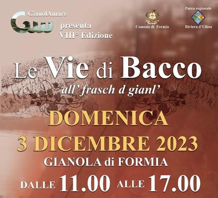Passeggiando in località Gianola, a Formia, domenica 3 dicembre le famiglie e i cittadini tutti potranno godere di una giornata all’insegna della tradizione e del buon vino con “Le Vie di Bacco 2023”, con la degustazione di vini e prelibatezze del territorio, sapientemente confezionate dai ristoratori e dai cittadini del quartiere formiano.