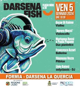 A partire dalle 19.30 da non perdere la manifestazione “Darsena Fish”. Si potrà innanzitutto degustare la classica frittura di pesce proposta dai pescatori della Darsena La Quercia. L’evento sarà anche ricco di sorprese con performance di artisti che uniranno varie forme d’arte: musica, danza, pittura. Per finire un flash mob a ritmo dei DJ. Un’atmosfera coinvolgente sarà creata grazie ad una straordinaria ambientazione di luci che coloreranno l’intera area, regalando un’esperienza unica. Tra gli artisti Oscar Di Raimo (violino), Aurora Macci (Violoncello), Paola Pagano e Marianna Rossi (Pianoforte), Francesco Azzari (Ballerino), Filomena Vezza (Pittrice), Livio Batosi (dj). La Direzione Artistica è curata dalla pianista Marianna Rossi. Non perdete l’occasione di vivere questa favolosa serata, un mix travolgente di musica, cibo e festa.