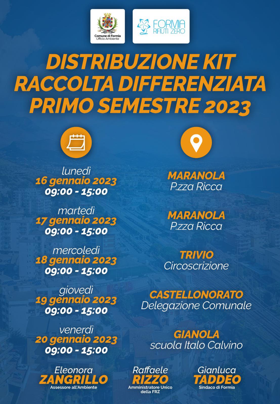 A partire dalla prossima settimana, presso le frazioni di Formia, prenderà il via la nuova distribuzione del kit di sacchetti per la raccolta differenziata relativa al primo semestre 2023.