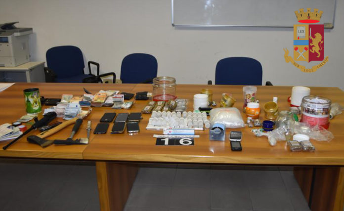 L’atto ha consentito di rinvenire e sequestrare un ingente quantitativo di droga: più precisamente venivano sequestrati circa 504,76 g di cocaina, 149,91 g di eroina, 2,064 kg di hashish, nonché 27 fiale di metadone, oltre a numerosi cellulari, varie schede telefoniche, bilancini di precisione e materiale per il confezionamento.