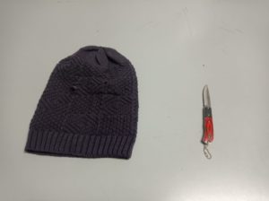 Perquisizione personale quindi durante la quale sono stati rinvenuti il coltello utilizzato per consumare la rapina ed un passamontagna.