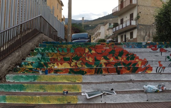 La nuova opera d’arte urbana, promossa dal centro culturale “Koinè” con il patrocinio dell’Amministrazione comunale, è in corso di realizzazione presso la scala che da via Lavanga conduce in via Virgilio e, da lì, alla Stazione ferroviaria. I gradoni si stanno coprendo di colori, fiori, frutti e decorazioni vivaci grazie all’opera degli artisti Palma Aceto e Pasquale Vezza. Un luogo grigio trasformato in un angolo esotico grazie all’iniziativa di una vivace e volonterosa Associazione che alla città e al quartiere in cui opera, ha deciso di offrire il suo contributo di bellezza. L’Amministrazione fornisce solo colori e pennelli. Il resto è puro volontariato. L’intervento è il primo passo di un percorso di rigenerazione urbana che intende riqualificare il tratto di Appia Antica corrispondente a via Lavanga. L’associazione “Koinè” realizzerà poi anche una seconda opera di street art in via Cassio, sulla parete vicina all’ingresso della biblioteca per bambini “La Casa dei Libri”.