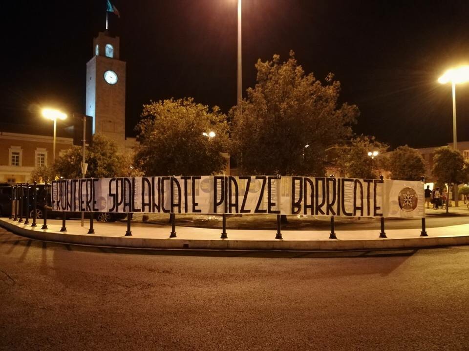 “Abbiamo voluto attaccare il ventre molle del pensiero buonista di governo e sindaco, quello per cui bisogna spalancare le frontiere nazionali per poi barricare le piazze delle nostre città”. Così Marco Savastano, responsabile di CasaPound Latina, a spiegazione dell’ultimo blitz notturno del movimento. Questa notte i militanti CasaPound sono tornati a far sentire la loro voce con uno striscione in piazza del Popolo recante la scritta “Frontiere spalancate, piazze barricate” per denunciare la gestione dell’immigrazione e dell’emergenza terrorismo da parte del governo nazionale e dell’amministrazione comunale. “Noi vogliamo vivere invece le nostre piazze come terreno di confronto e di incontro tra la cittadinanza rifiutando l’idea della militarizzazione e dello stato d’assedio – afferma Savastano -. L’unica azione davvero rivoluzionaria oggi è chiudere le frontiere nazionali ed europee e liberare così i nostri centri urbani”