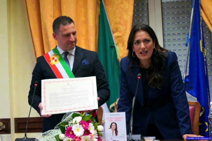 Tributo di lode della città di Gaeta, per Safiria Leccese, al termine della presentazione del suo ultimo libro intitolato “La Ricchezza del bene”.