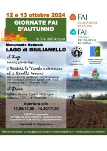 Per le Giornate FAI d’Autunno 2024 – sabato 12 e domenica 13 ottobre – la Delegazione di Latina, proseguendo il percorso inaugurato l’anno scorso sulle vie dell’Acqua nel Territorio pontino, aprirà al grande pubblico il percorso naturalistico del Lago di Giulianello, monumento naturale, specchio d’acqua di origine vulcanica, meta di uccelli come il Martin Pescatore, la Ghiandaia o la Garzetta, un sito per molti ancora sconosciuto, da scoprire con la sua storia, per ritrovare la connessione con la bellezza del paesaggio della natura e delle sue creature.