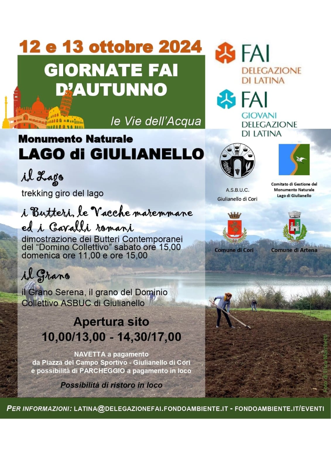 “Un luogo dell’anima – lo ha definito Gilda Iadiciccco, capo Delegazione FAI di Latina – un posto magico a poca distanza da Latina, uno specchio d’acqua la cui biodiversità ha attirato l’attenzione della Delegazione FAI di Latina. Peculiarità di questa edizione sarà la presenza di un percorso dedicato all’agrobiodivesità, grazie alla collaborazione con l’Asbuc che gestisce i terreni ad uso civico prospicienti il lago. Questa tradizione medioevale, conservatasi oltre il tempo e i secoli, vede la comunità di Giulianello esercitare tali diritti civici, ormai altrove dimenticati, con particolare virtuosismo poiché su questi terreni è stata recuperata la coltivazione dei grani antichi e l’allevamento delle vacche maremmane, originarie abitanti delle Paludi Pontine”.