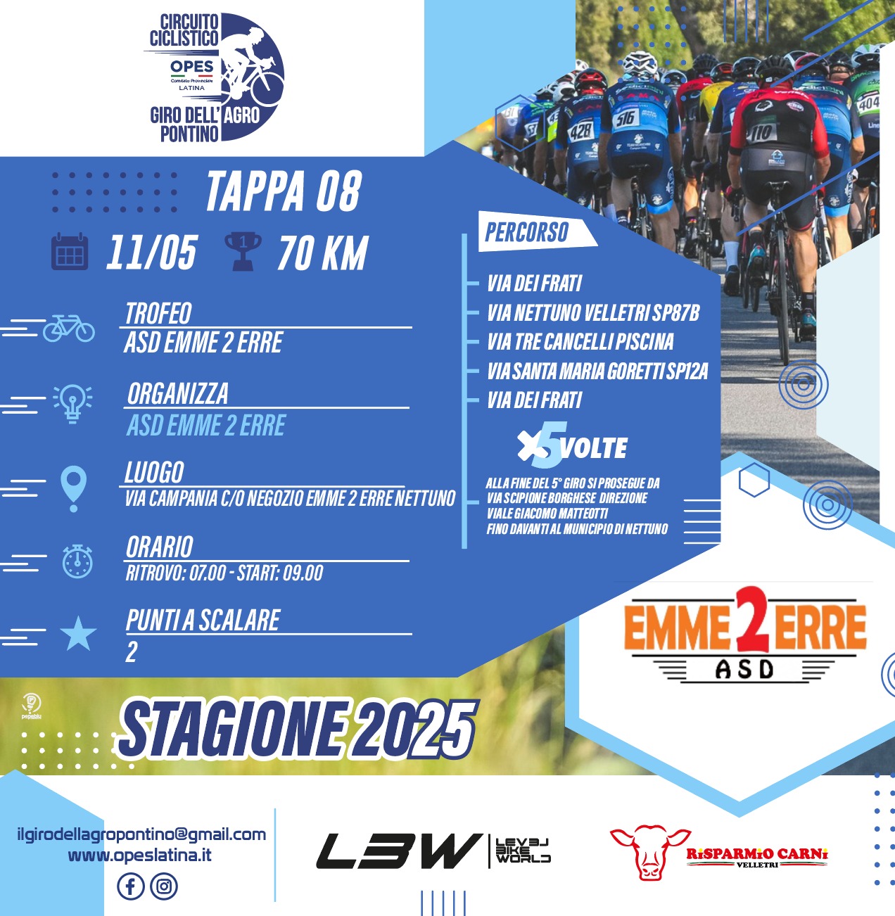 È pronto ad andare in scena domenica 11 maggio 2025 a Nettuno, il Trofeo Asd Emme 2 Erre, ottava tappa del Giro dell’Agro Pontino Opes.