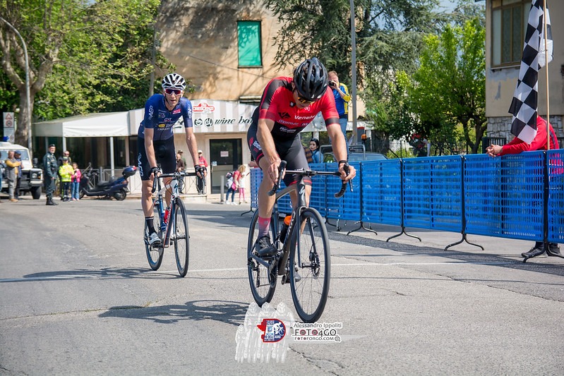 Gara che, visto la durezza dell’arrivo, poteva far presagire a tatticismi esasperati. Invece 8 giri piatti percorsi ad una media stratosferica lasciavano spazio ad un primo tentativo portato da Garofalo Massimo, Orlacchio Antonio, Rossi Fabrizio, Maggi Luca , Papa Pasquale durato quasi due giri, ma la mancanza di un portacolori dell’ASD BikeLab Astolfi non dava altro spazio ai fuggitivi. Inizio dell’ultimo giro ancora 12 uomini tentavano la sortita ma la non collaborazione non mandava in porto la fuga. La salita che portava su nell’abitato di Sezze vedeva partire al secondo tornante in solitaria Samuel Tartaglia, e l’unico ad aver caparbietà necessaria per poterlo sopravanzare a pochi metri dall’arrivo era Luca Madaluni ASD TERRACINA CYCLING che per il secondo anno consecutivo alzava le mani sotto il traguardo. Secondo Samuel Tartaglia ASD VELOTEAM, terzo Giovanni Rinicella ASD USC NARDECCHIA MONTINI TEAM.