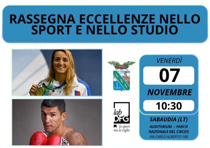 Prosegue la rassegna “Eccellenze nello sport e nello studio”, promossa dalla casa editrice Lab DFG con il patrocinio della Provincia di Latina. Il secondo appuntamento ha visto protagonisti due grandi sportivi italiani, Alessia Berra e Emanuele Blandamura, che hanno incontrato gli studenti dell’Istituto onnicomprensivo “Giulio Cesare” di Sabaudia, diretto dalla professoressa Miriana Zannella.