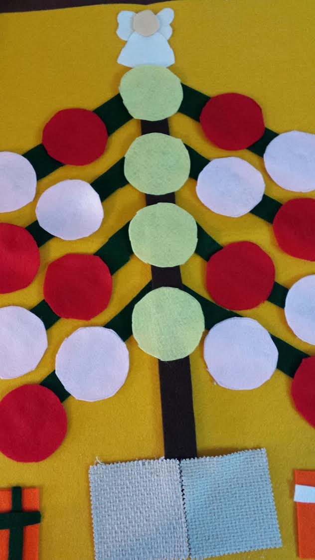 Ovviamente , non c’è albero di Natale che non abbia un puntale : il nostro sarà un angioletto molto stilizzato ritagliato nel feltroA questo punto non ci resta che scrivere i numeri che non dovranno necessariamente essere in ordine , ma potranno anche essere sparsi qua e là sul calendario.