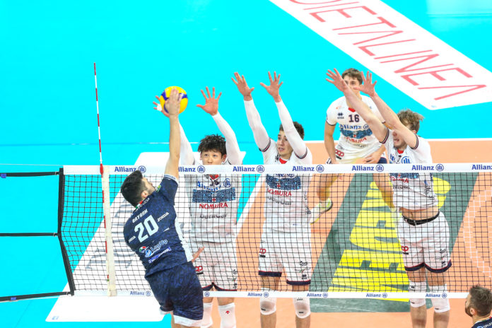 ALLIANZ MILANO: Kaziyski 8, Mergarejo 1, Zonta, Catania (lib.), Vitelli, Reggers 15, Loser 9, Innocenzi ne, Piano 5, Ishikawa 13, Porro 3, Colombo (lib.) ne, Dirlic 1. All. Piazza