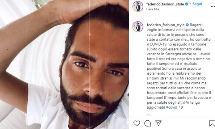 Il messaggio è stato scritto poche ore fa su Instagram da Federico Fashion Style, il parrucchiere delle vip che a fine luglio era stato a Sermoneta per un casting, poi era tornato a Milano al lavoro. Oggi lo stylist è in isolamento nella sua casa di Roma ed avvisa tutti di stare attenti. Ad agosto era andato in vacanza a Porto Cervo, in Costa Smeralda, ed è tornato contagiato come successo a tanti questa estate: il coronavirus non fa sconti a nessuno. Nemmeno ai vip.