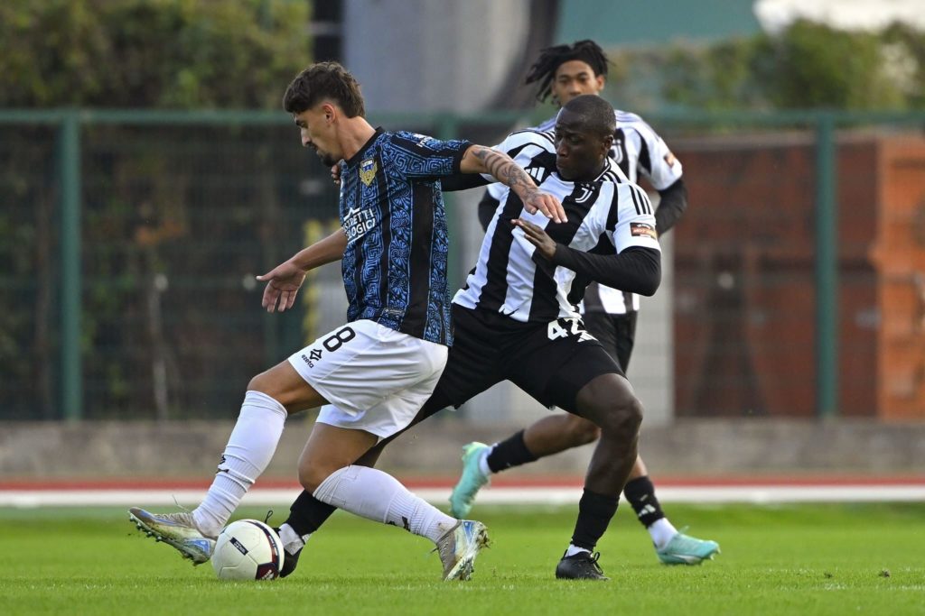 Il primo tempo è stato caratterizzato da un possesso palla in larga parte a favore del Latina, che ha cercato di costruire azioni senza però creare vere occasioni da gol. I pontini, infatti, hanno mantenuto un controllo quasi totale della manovra, bloccando ogni tentativo di costruzione della Juventus, ma senza riuscire a rendersi pericolosi davanti alla porta difesa da Daffara. La squadra di Boscaglia ha faticato a trovare spazi in attacco, e la mancanza di un attaccante di ruolo si è fatta sentire, con i soli Improta e Bocic a cercare di sfondare la difesa bianconera senza successo. La migliore occasione arriva con una conclusione di Ndoj da fuori area, respinta in corner da Daffara, ma anche questo tentativo si conclude senza esito.