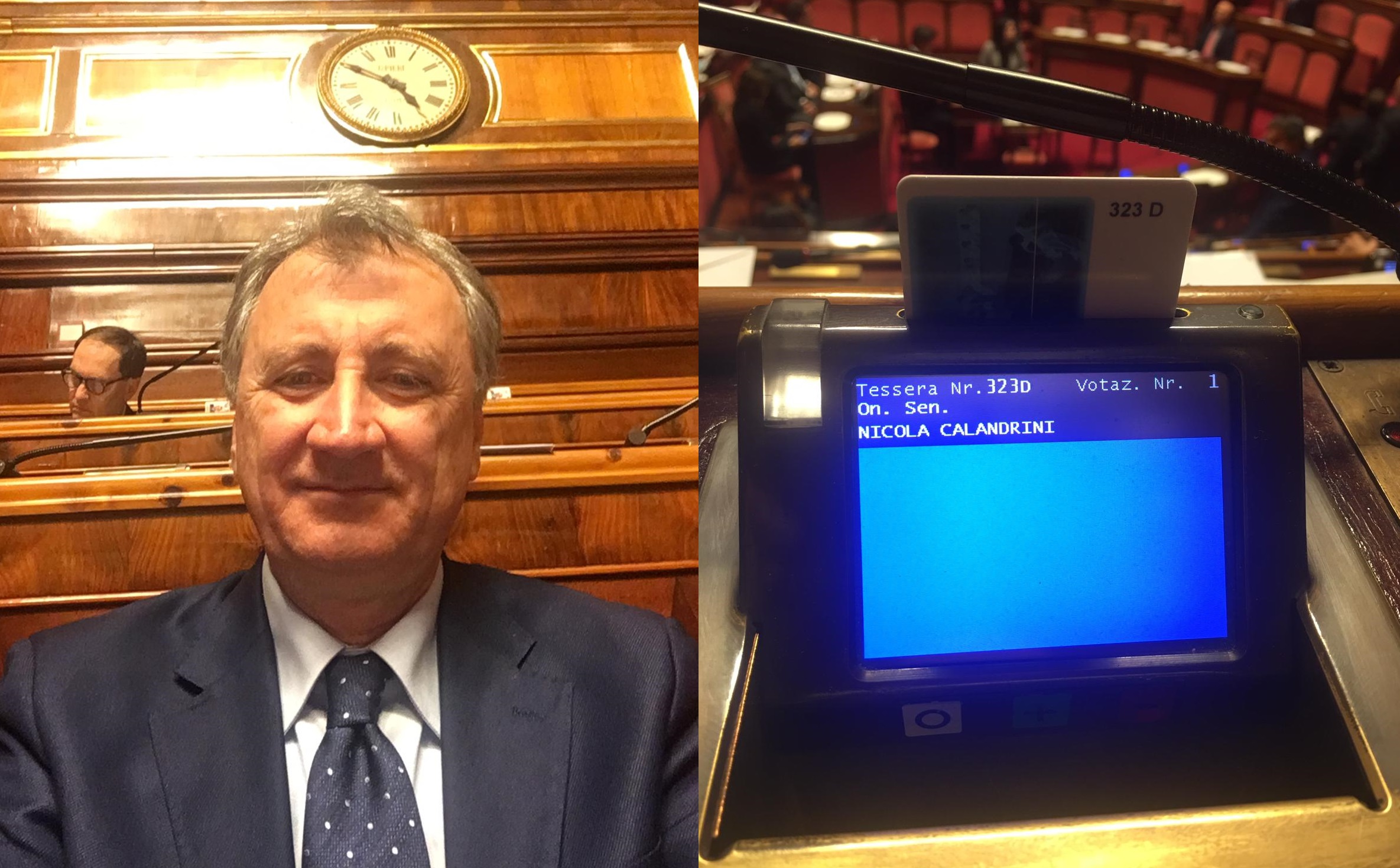 Nelle foto pubblicate la prima posa tra i banchi di opposizione alla maggioranza gialloverde. Calandrini, tessera 323D, ha anche fotografato il passaggio “elettronico” a Palazzo Madama.