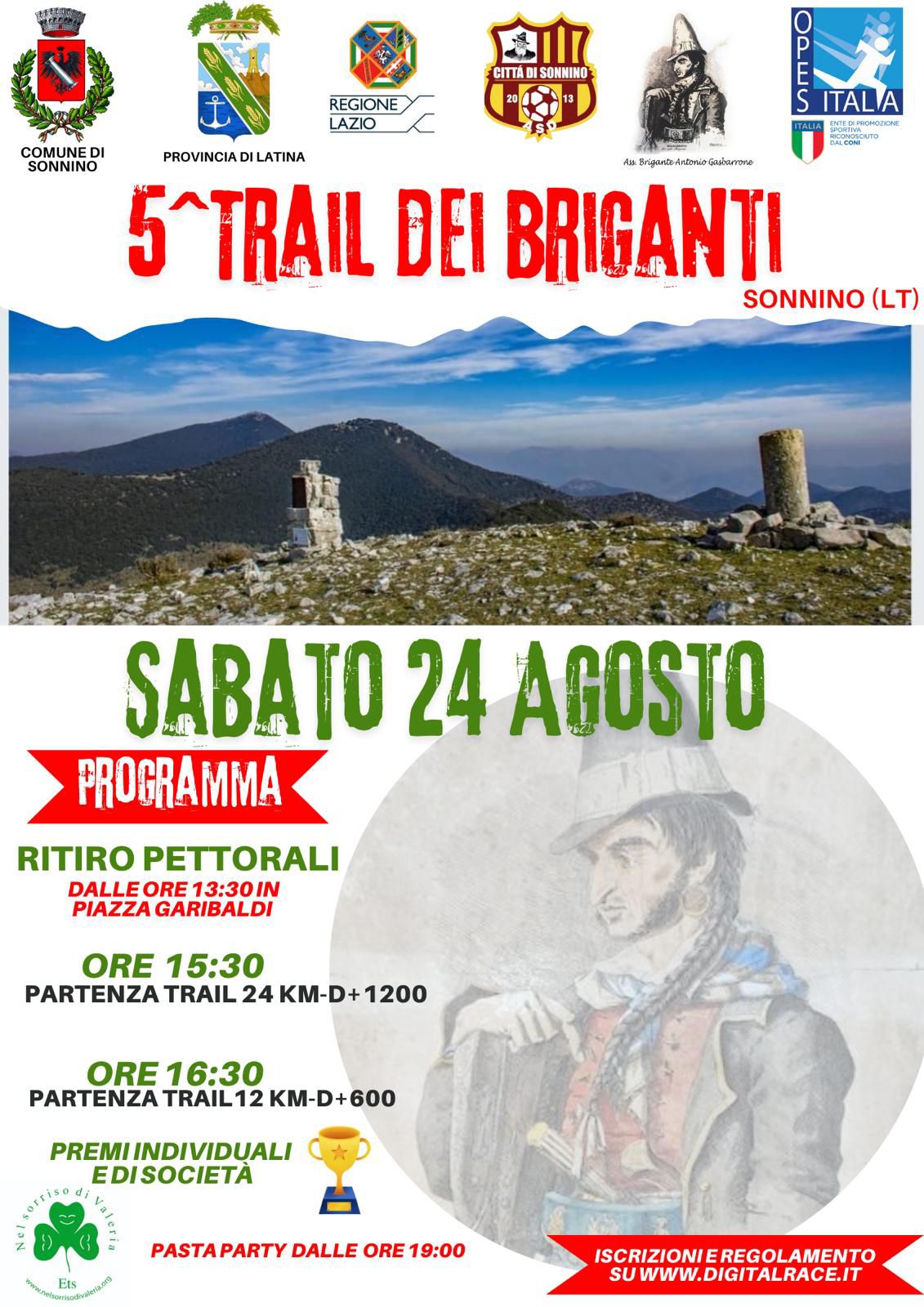 In arrivo anche la tappa numero tredici del Circuito Podistico Opes “In Corsa Libera” con il Trail dei Briganti, organizzato dalla Polisportiva Sonnino 1960 con il patrocinio del Comune di Sonnino, Provincia di Latina, Regione Lazio e Opes.
