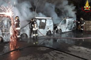 Tre furgoni di una ditta privata sono andati distrutti a seguito di un incendio. E’ ciò che è accaduto la scorsa notte a Cisterna con il rogo che si è verificato all’interno di un’area privata lungo via Appia Nord.