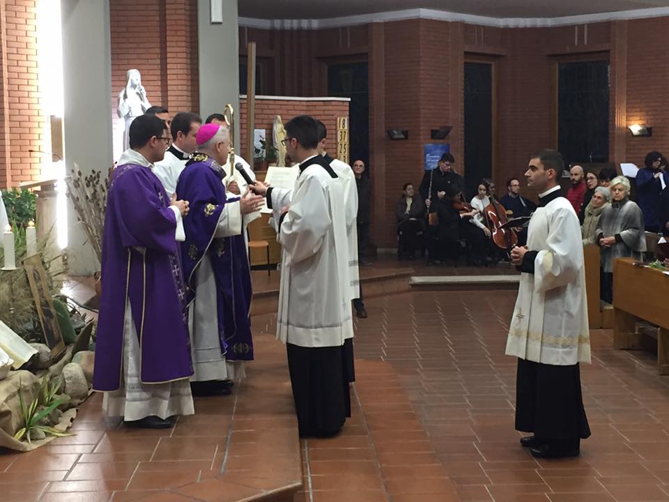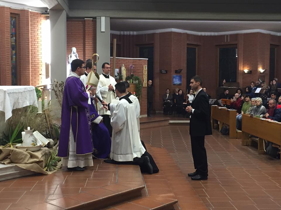 Si chiama Alessandro Aloè e dopo tre anni di seminario da oggi è ufficialmente candidato agli Ordini Sacri. Il giovane ingegnere di Latina, da tre anni seminarista, si è assunto pubblicamente l’impegno di formarsi per diventare sacerdote nel prossimo futuro. La cerimonia di ammissione agli Ordini Sacri, celebrata da Monsignor Mariano Crociata, è avvenuta in questa domenica di Quaresima nella chiesa di Santa Rita a Latina, in quella che è stata la parrocchia di Alessandro. Nel momento storico in cui la crisi delle vocazioni preoccupa il Vaticano, la Diocesi di Latina contribuisce con un nuovo chierico a distanza di una settimana quando sempre il vescovo Crociata ha conferito il ministero dell’accolitato a un altro seminarista pontino Giovanni Carovello. Ulteriori elementi di successo per la Curia pontina dopo le elezioni in meno di un anno a Vescovo dei parroci don Felice Accrocca e don Gianni Checchinato.
