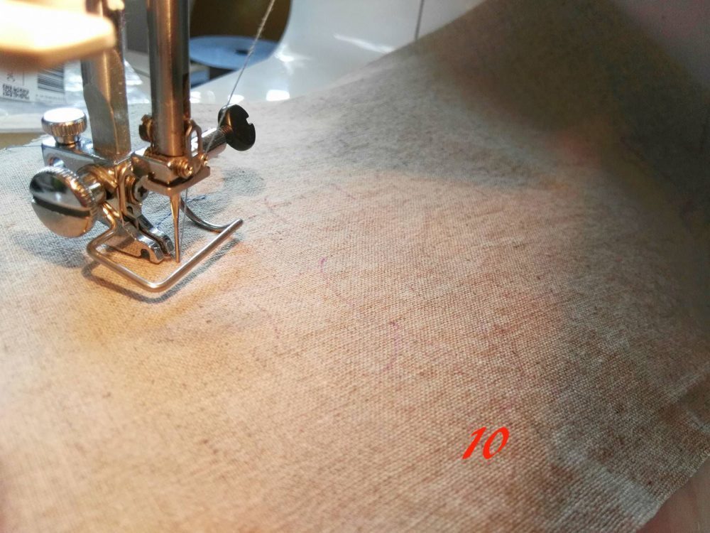Togli il piedino alla macchina da cucire (foto 10). Inizia a ricamare (cucire) e nel contempo sposta la stoffa…è come se la macchina disegnasse e tu la devi guidare.