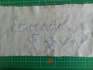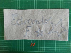 2-13-14-15-16Ora prendi la penna cancellabile e segna sulla stoffa i contorni della scritta e simbolo da ricamare.