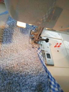 e cuci con un bel zig zag ampio che comprenda parte dello sbieco (superiore e inferiore) e parte della spugna