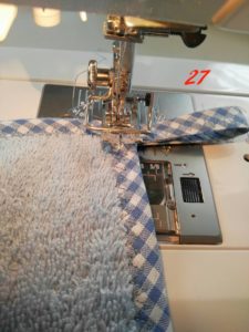 [se non puoi togliere il trasporto alla tua macchina da cucire, niente paura o ricami a mano con un punto scritto o puoi cucire con piedino normalmente passando 3 volte avendo cura di sfalsare i passaggi per dare un risultato irregolare alla cucitura].