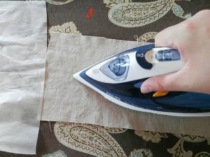 Ora fai una bordatura stirando sul rovescio un bordo di circa 1 cm per lato.